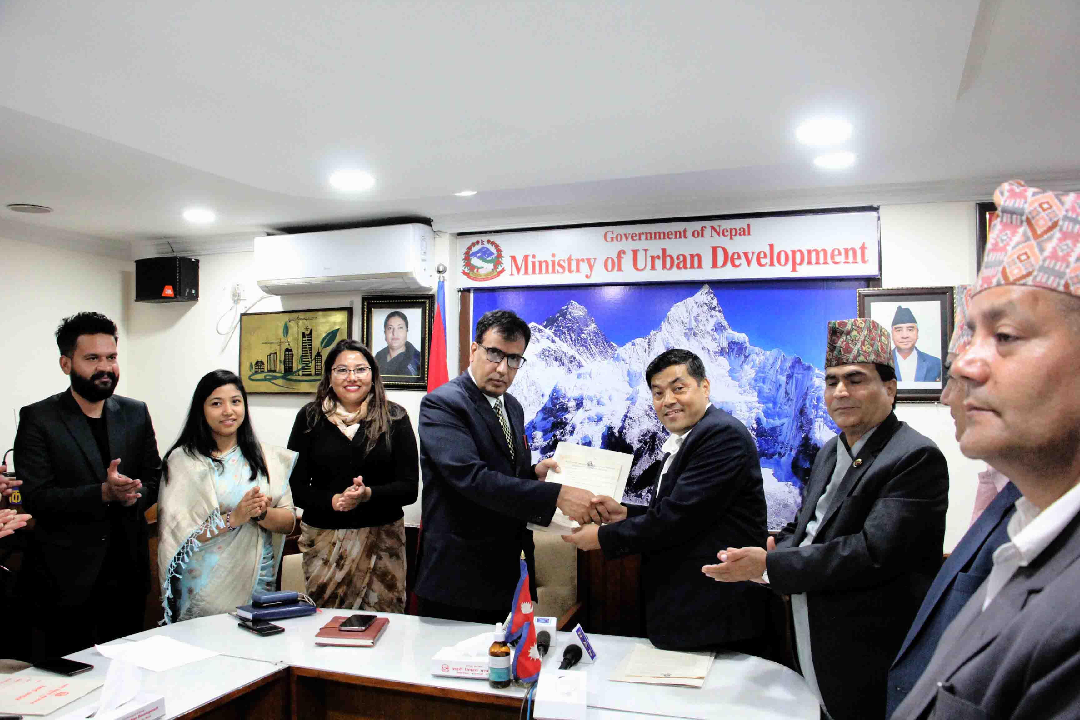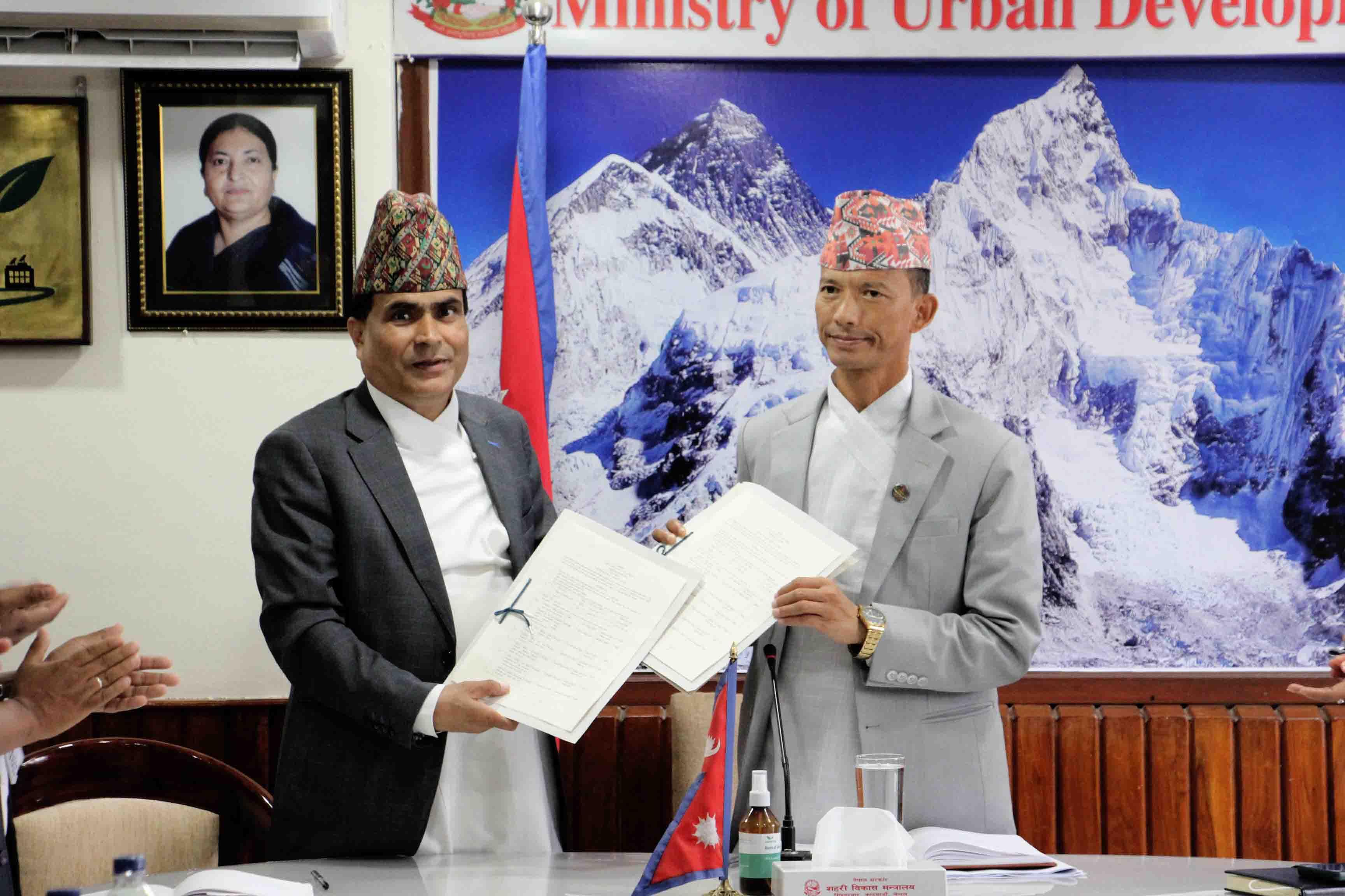 माननीय शहरी विकास मन्त्री मेटमणि चौधरीज्यू र सचिव डा. रमेश प्रसाद सिंहज्यूबिच भएको कार्य सम्पादन सम्झौता कार्यक्रमका झलकहरू (२०७९-०४-२२)