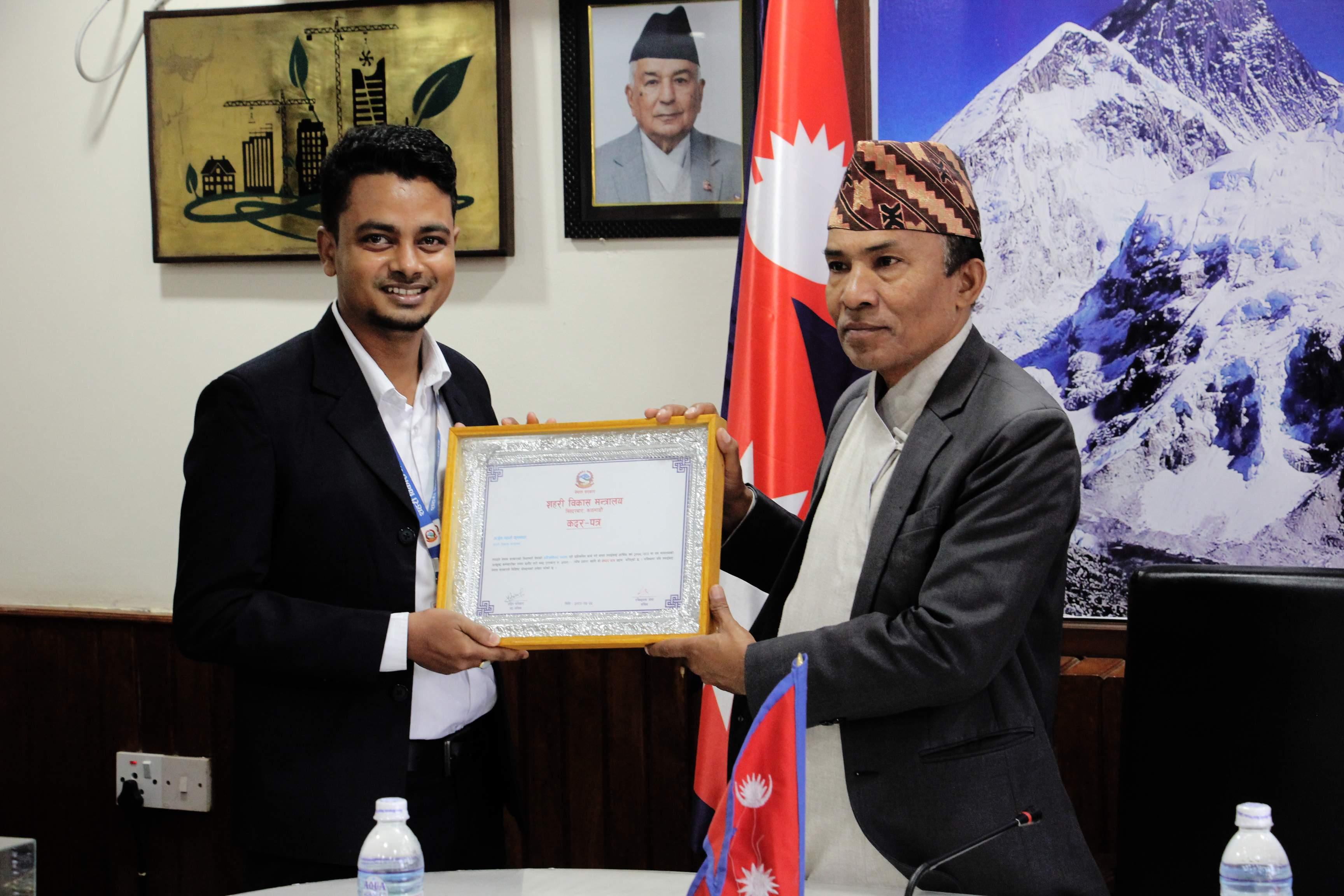 निजामती सेवा दिवस, आ.व. २०७९-८० को शहरी विकास मन्त्रालयको उत्कृष्ट कर्मचारी इन्जिनियर श्री अर्जुन महतो कुशवाह सम्मानित (२०८०-०५-२२)