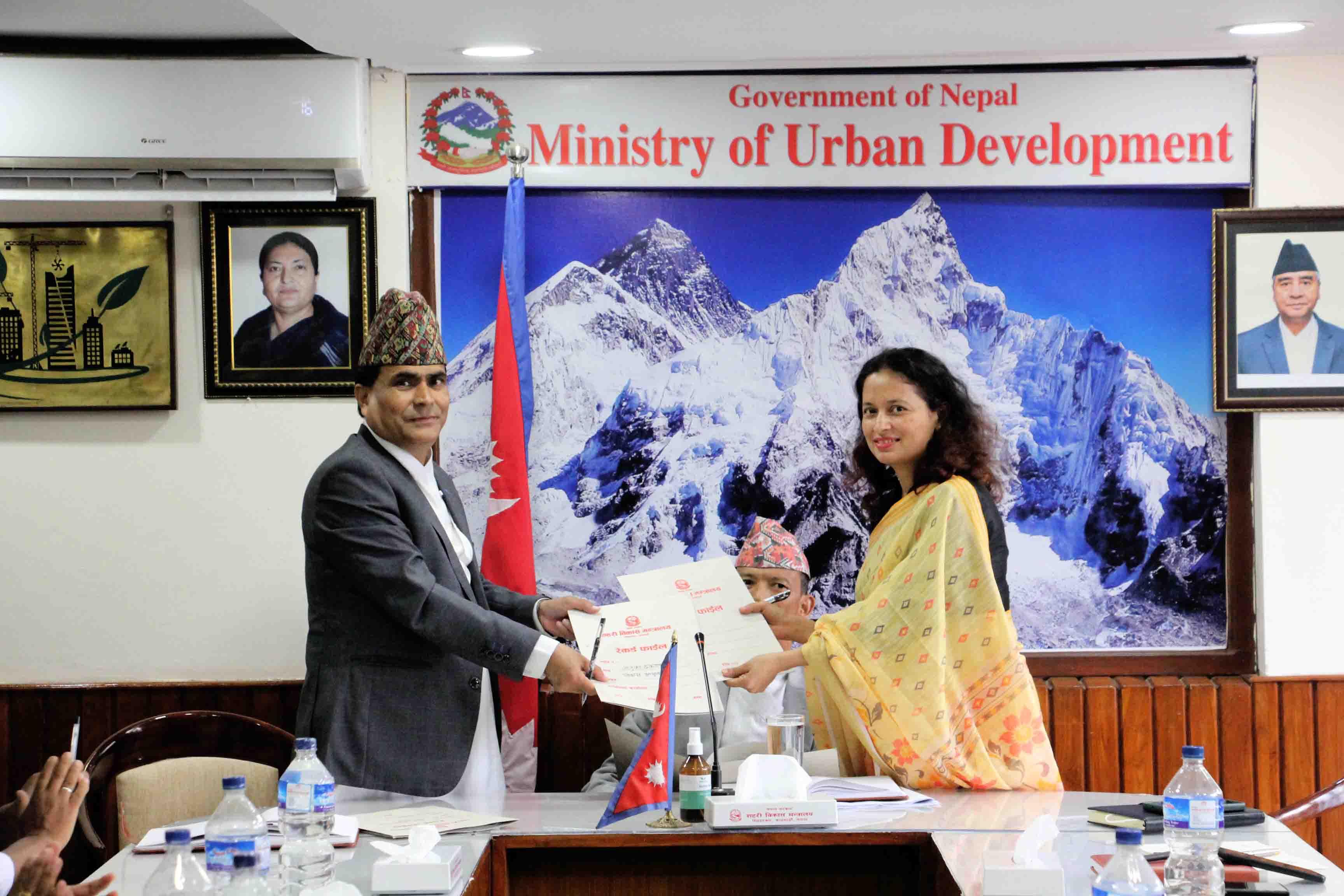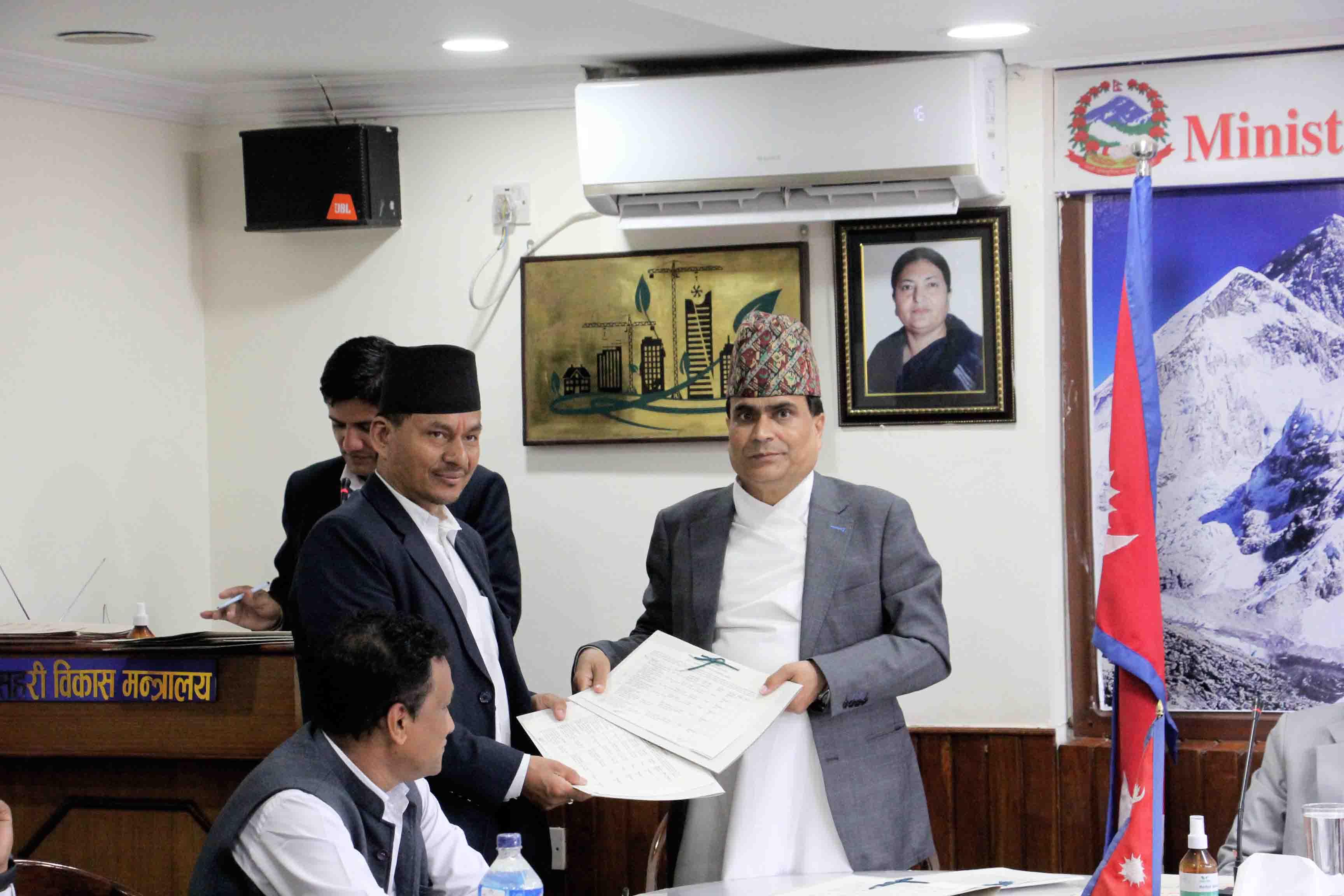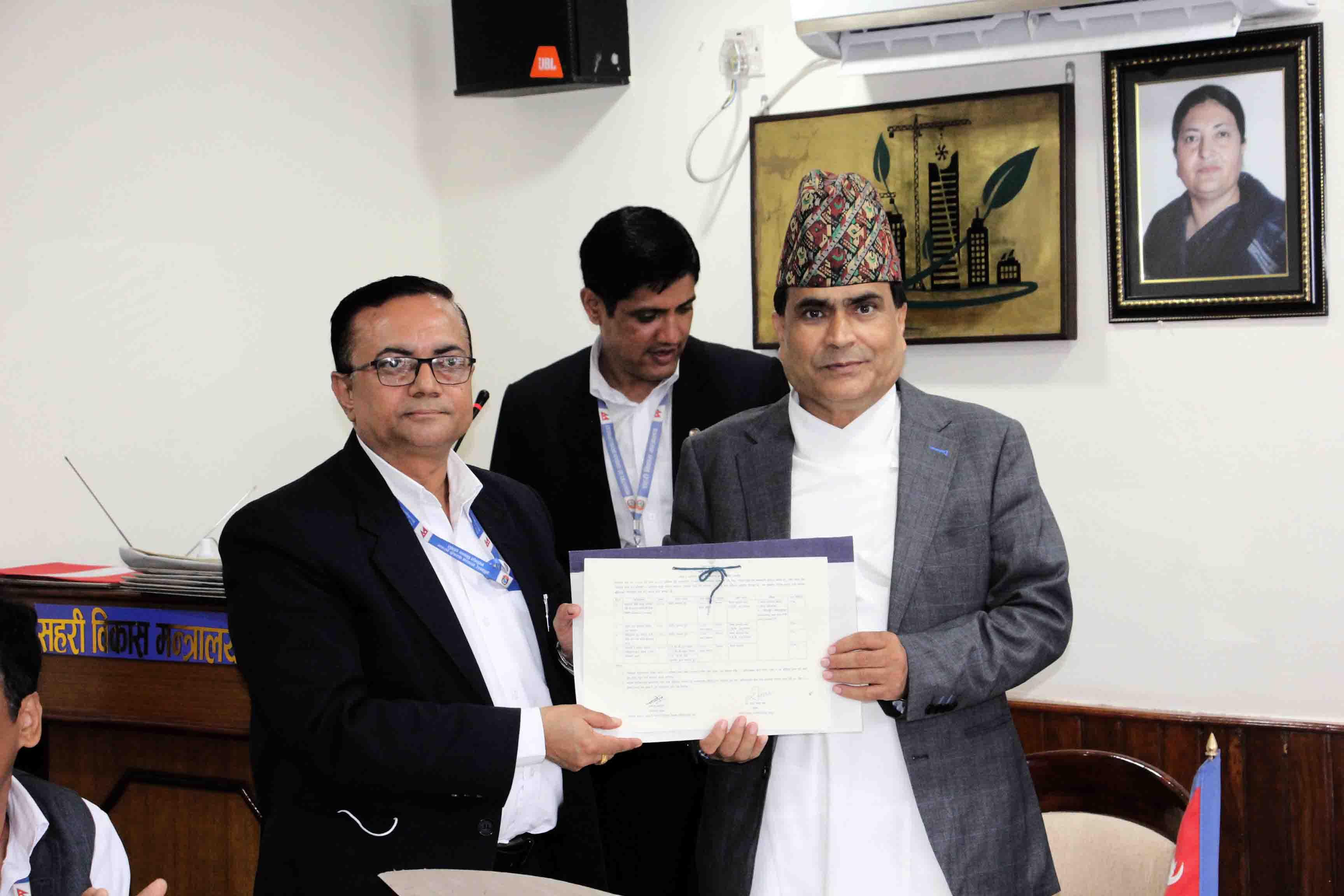 माननीय शहरी विकास मन्त्री मेटमणि चौधरीज्यू र सचिव डा. रमेश प्रसाद सिंहज्यूबिच भएको कार्य सम्पादन सम्झौता कार्यक्रमका झलकहरू (२०७९-०४-२२)