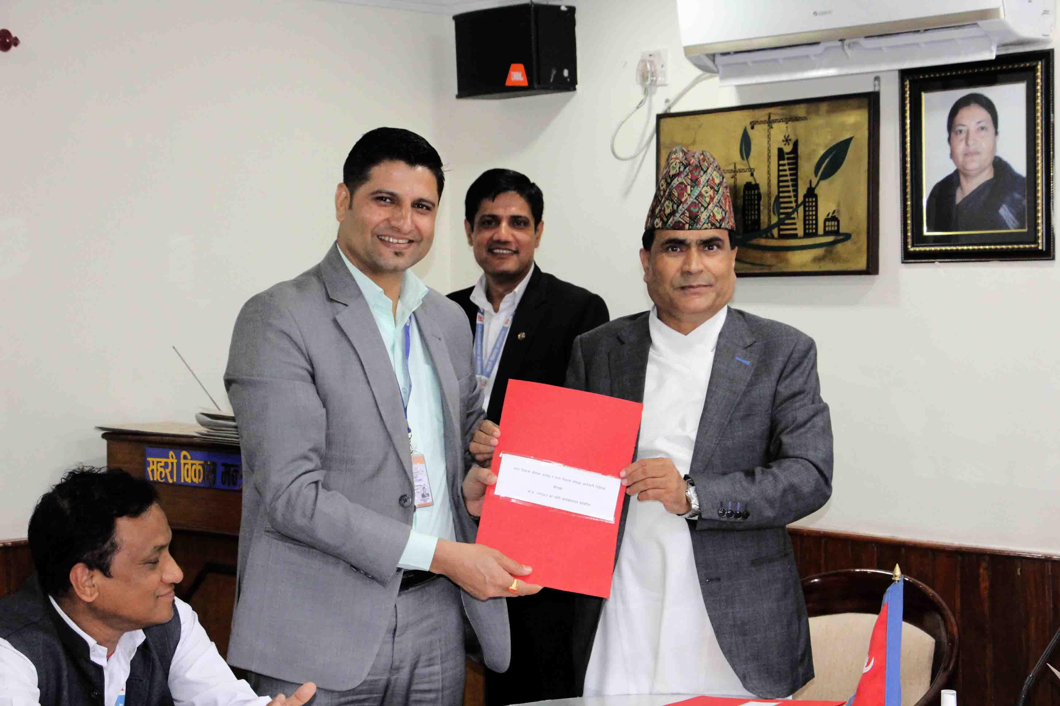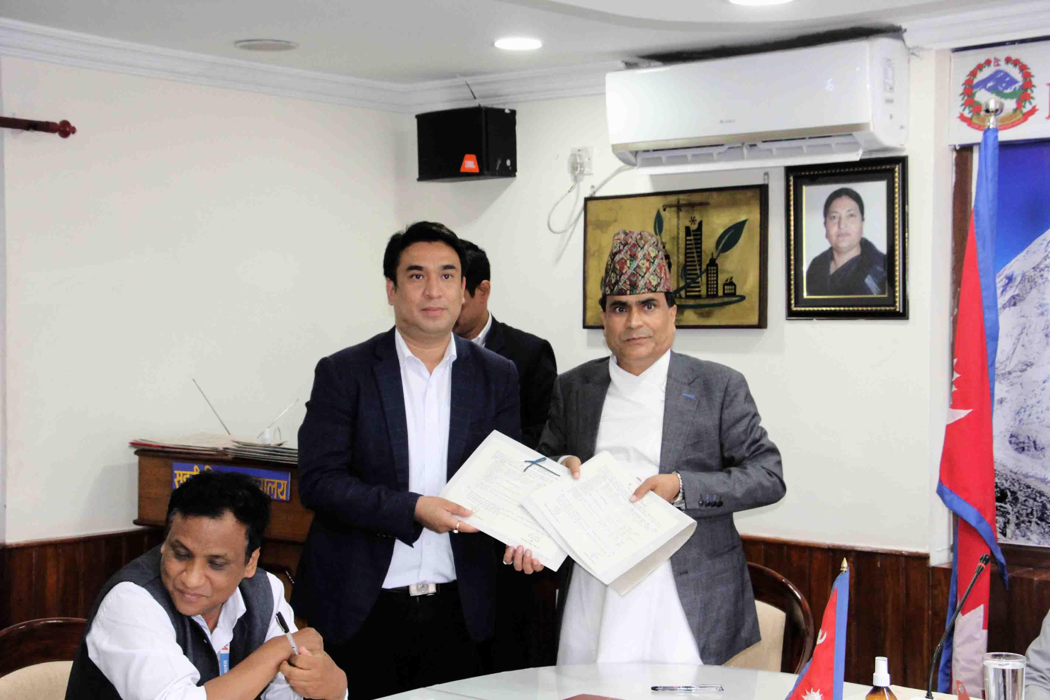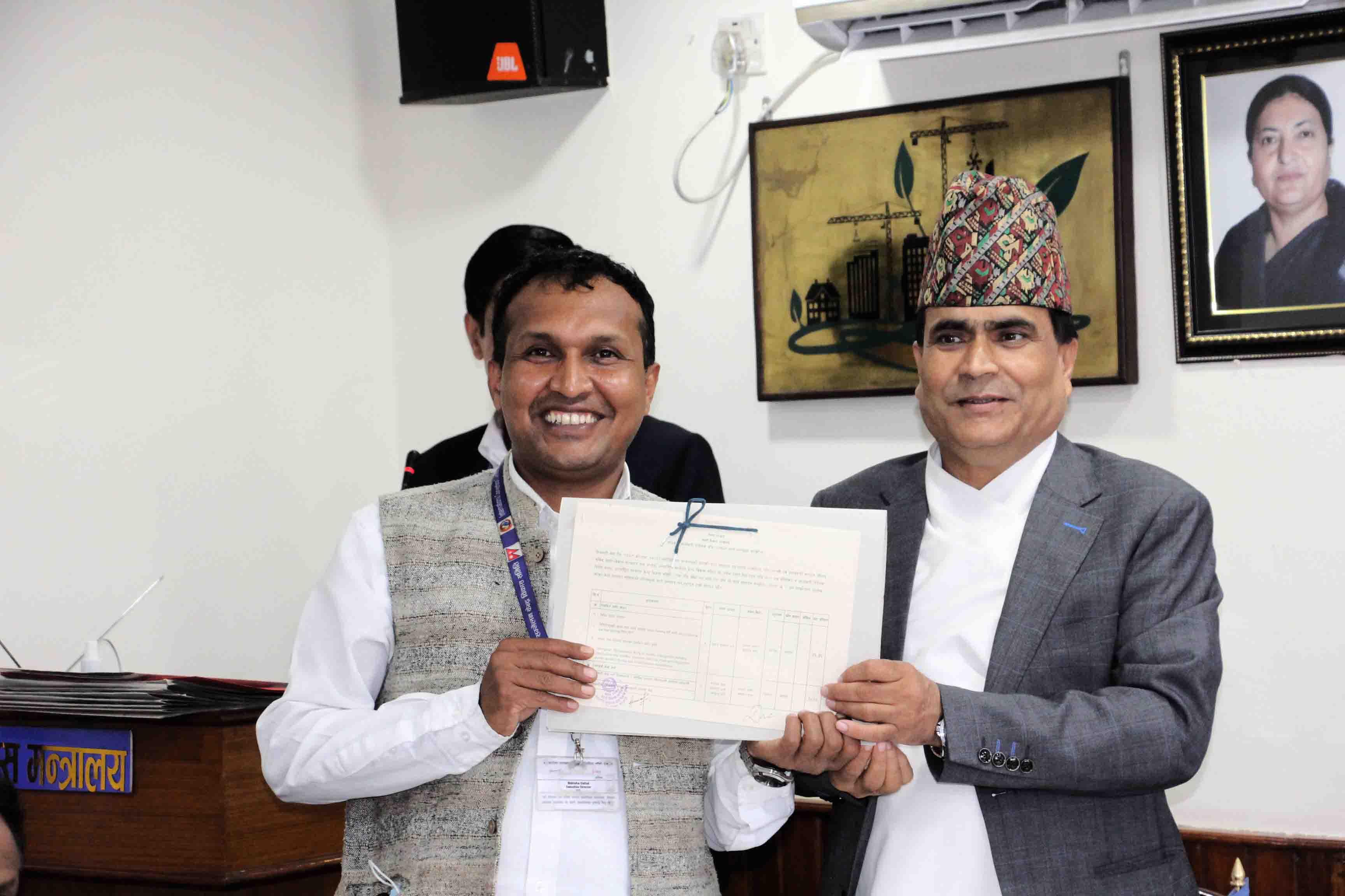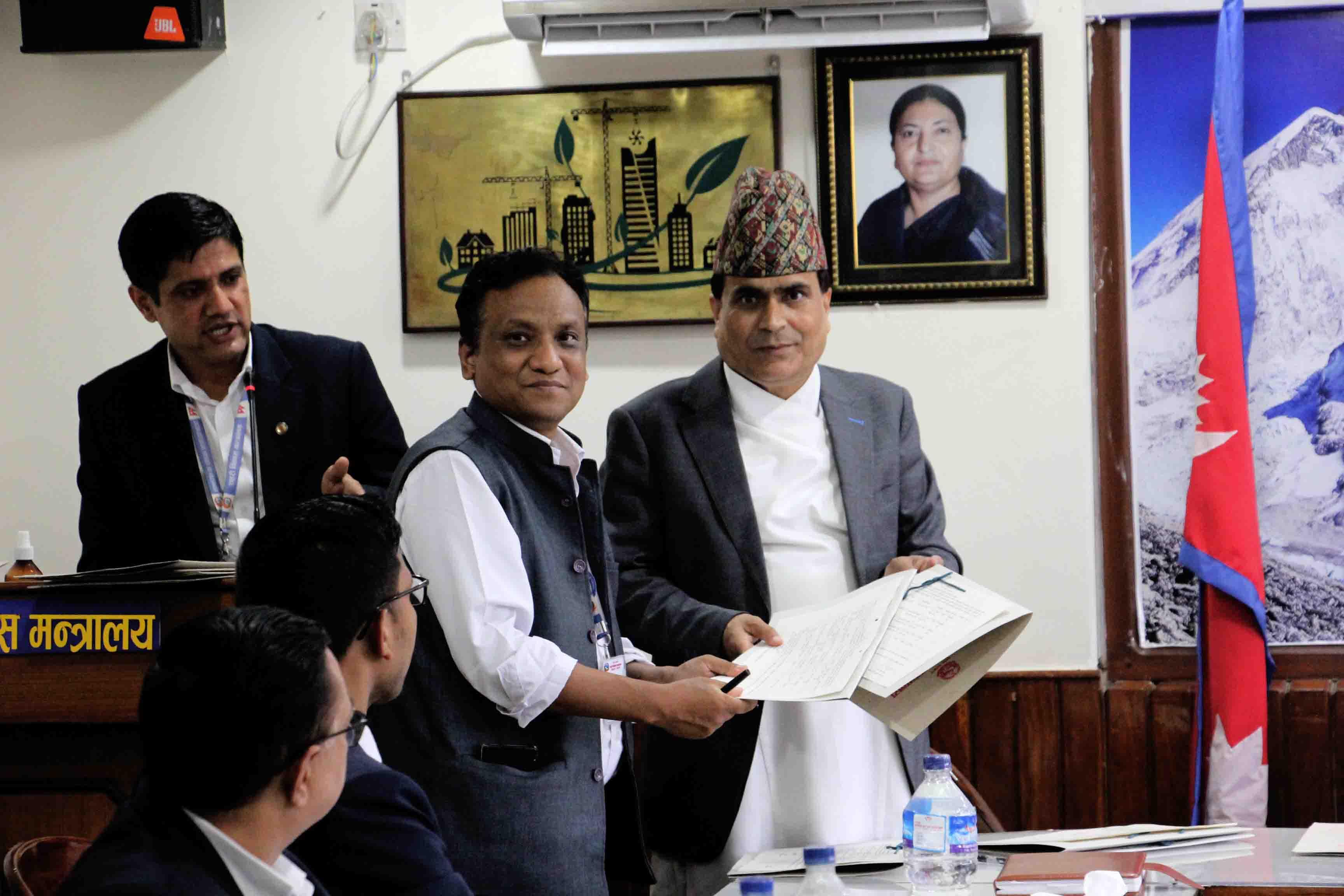 माननीय शहरी विकास मन्त्री मेटमणि चौधरीज्यू र सचिव डा. रमेश प्रसाद सिंहज्यूबिच भएको कार्य सम्पादन सम्झौता कार्यक्रमका झलकहरू (२०७९-०४-२२)