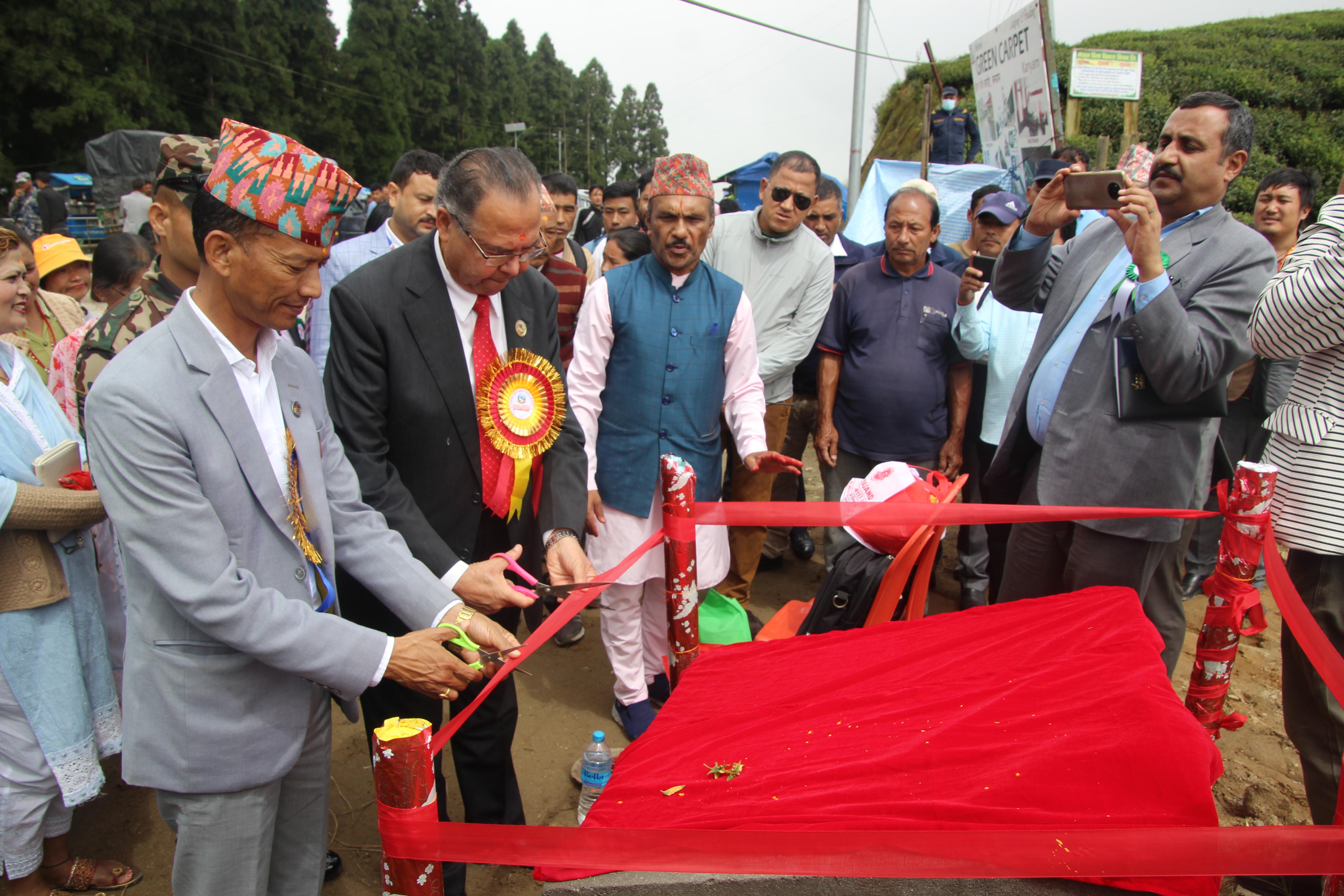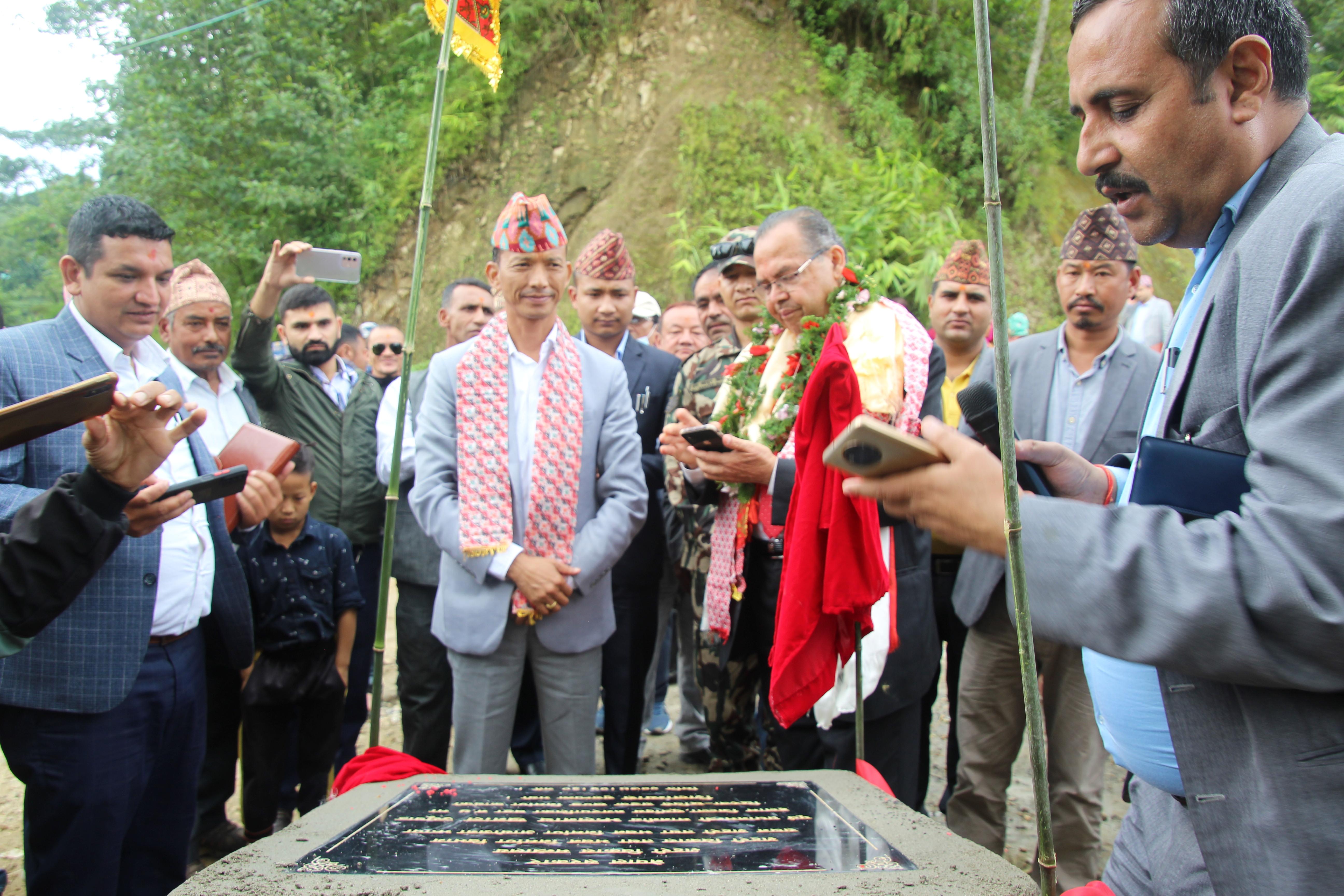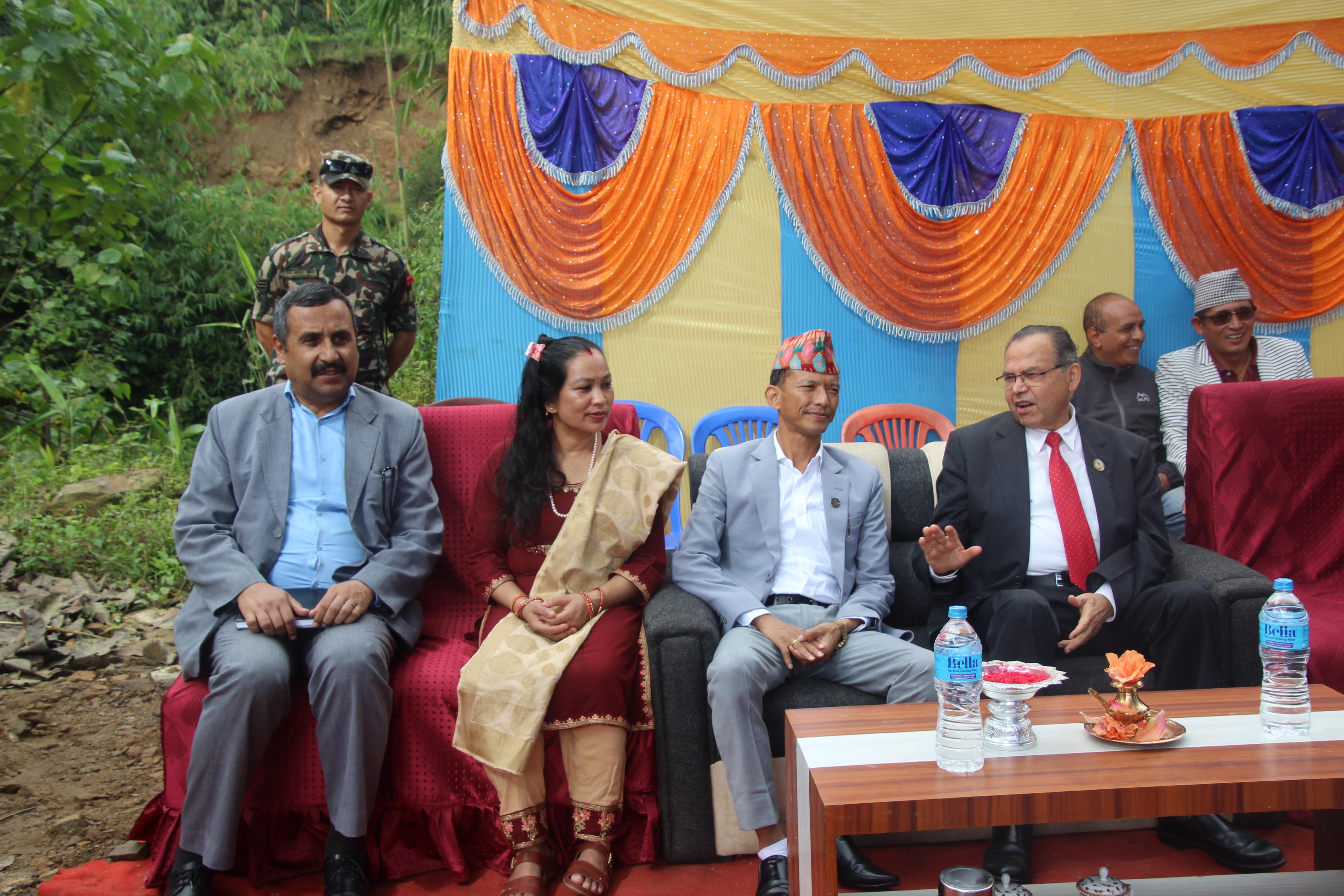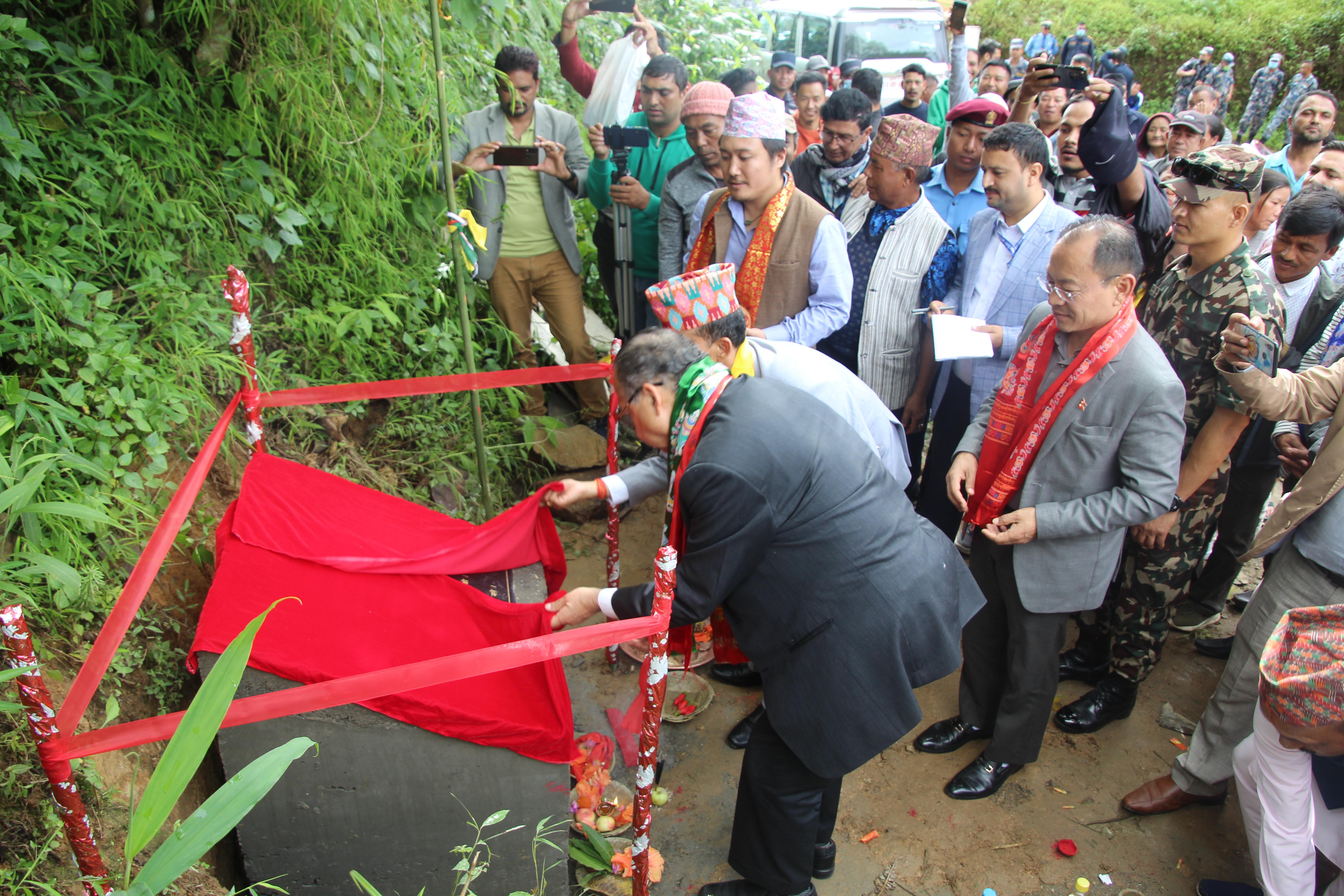 सूर्योदय नगरपालिका, इलामका विभिन्न स्थानमा एकीकृत शहरी पूर्वाधार विकास कार्यक्रमको शिलान्यास गर्नुहुँदै पूर्व प्रधानमन्त्री र माननीय शहरी विकास मन्त्री मेटमणि चौधरीज्यू