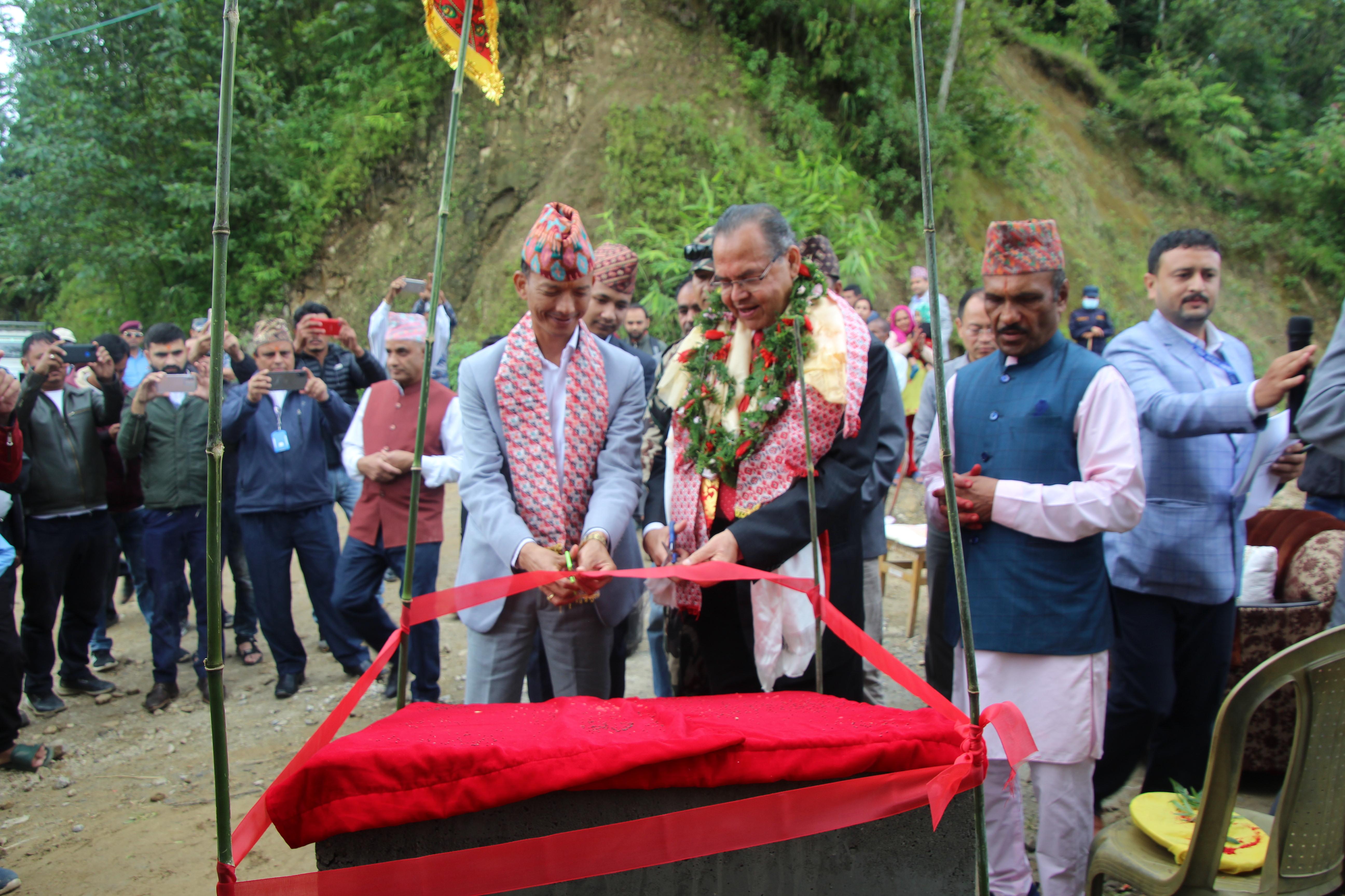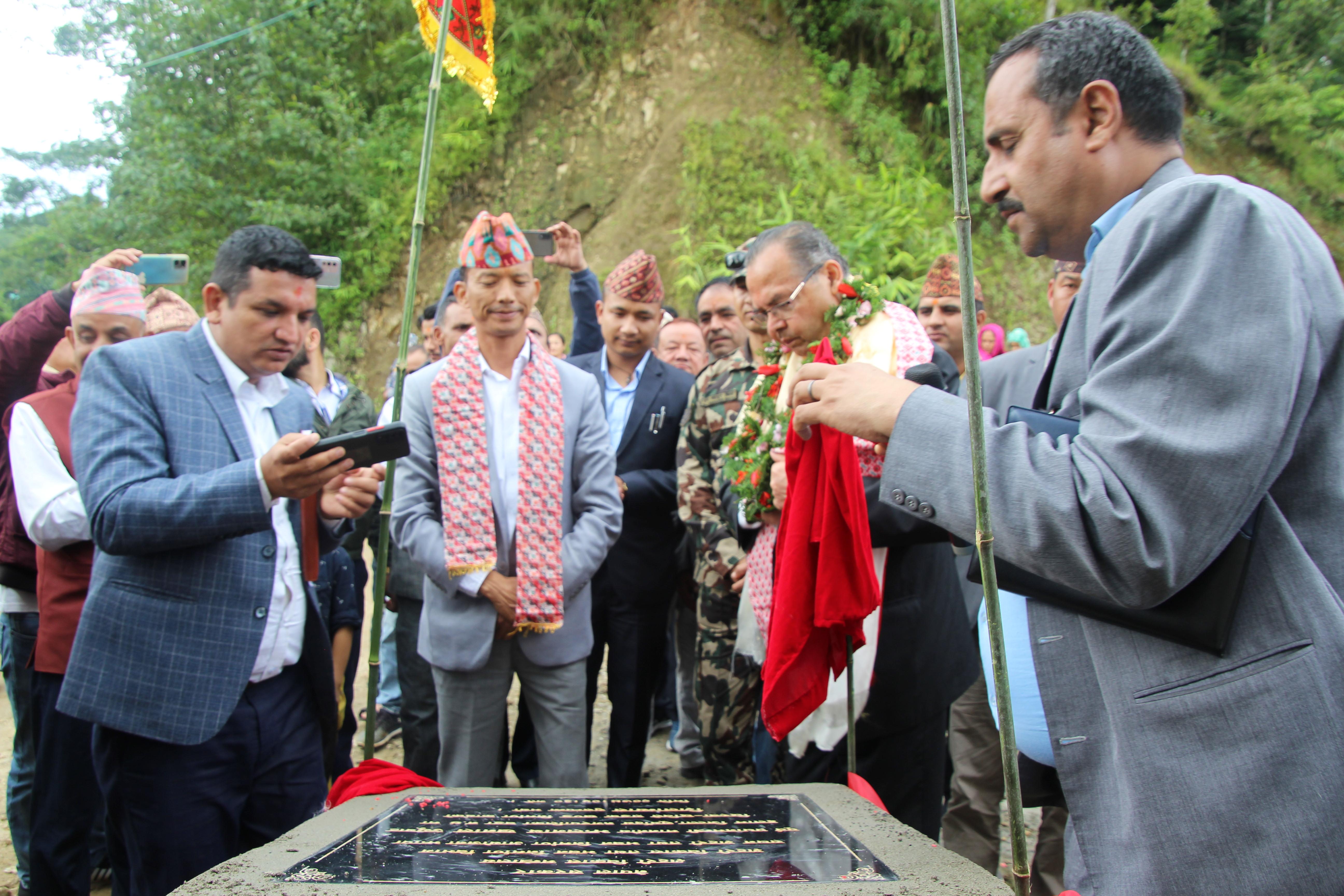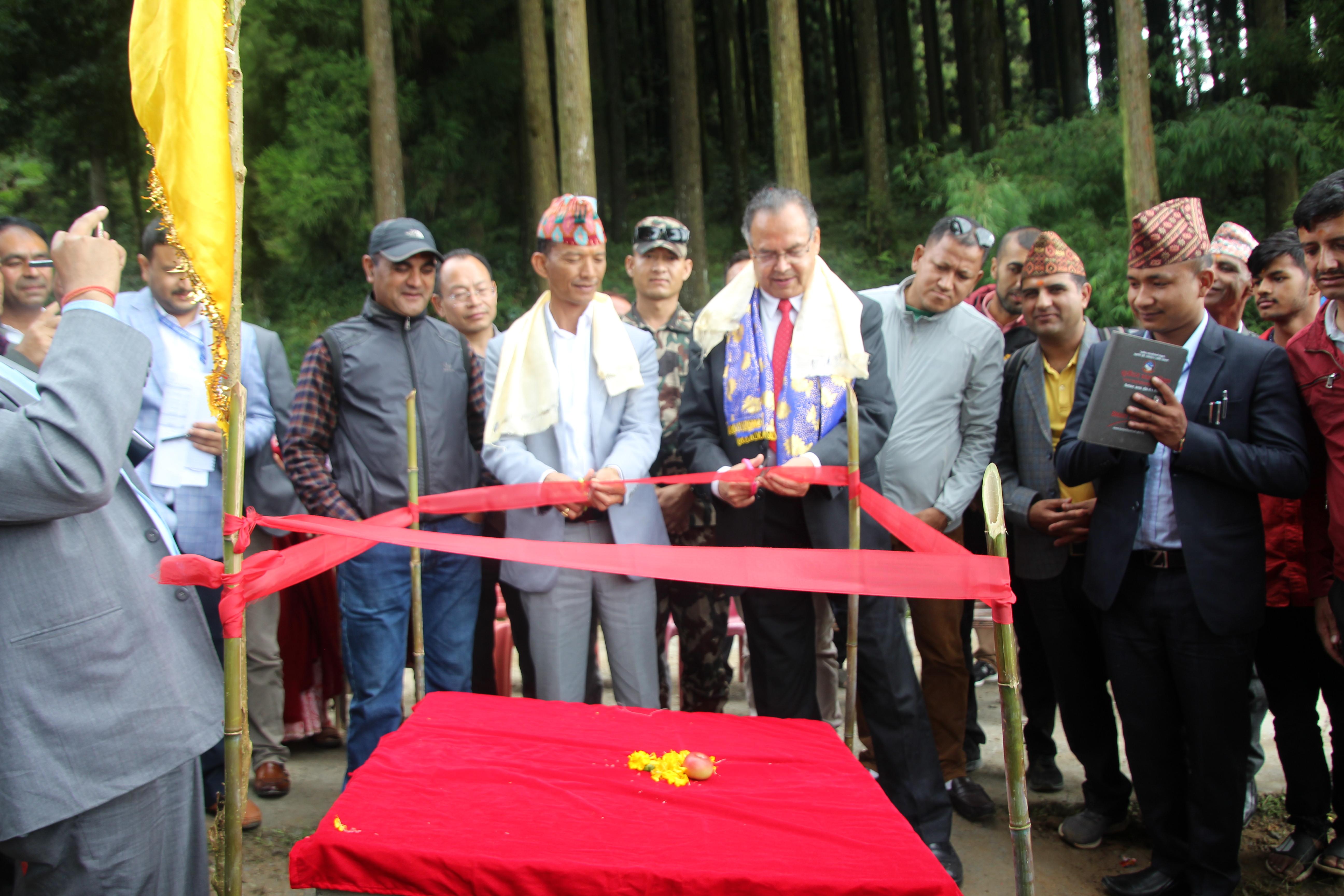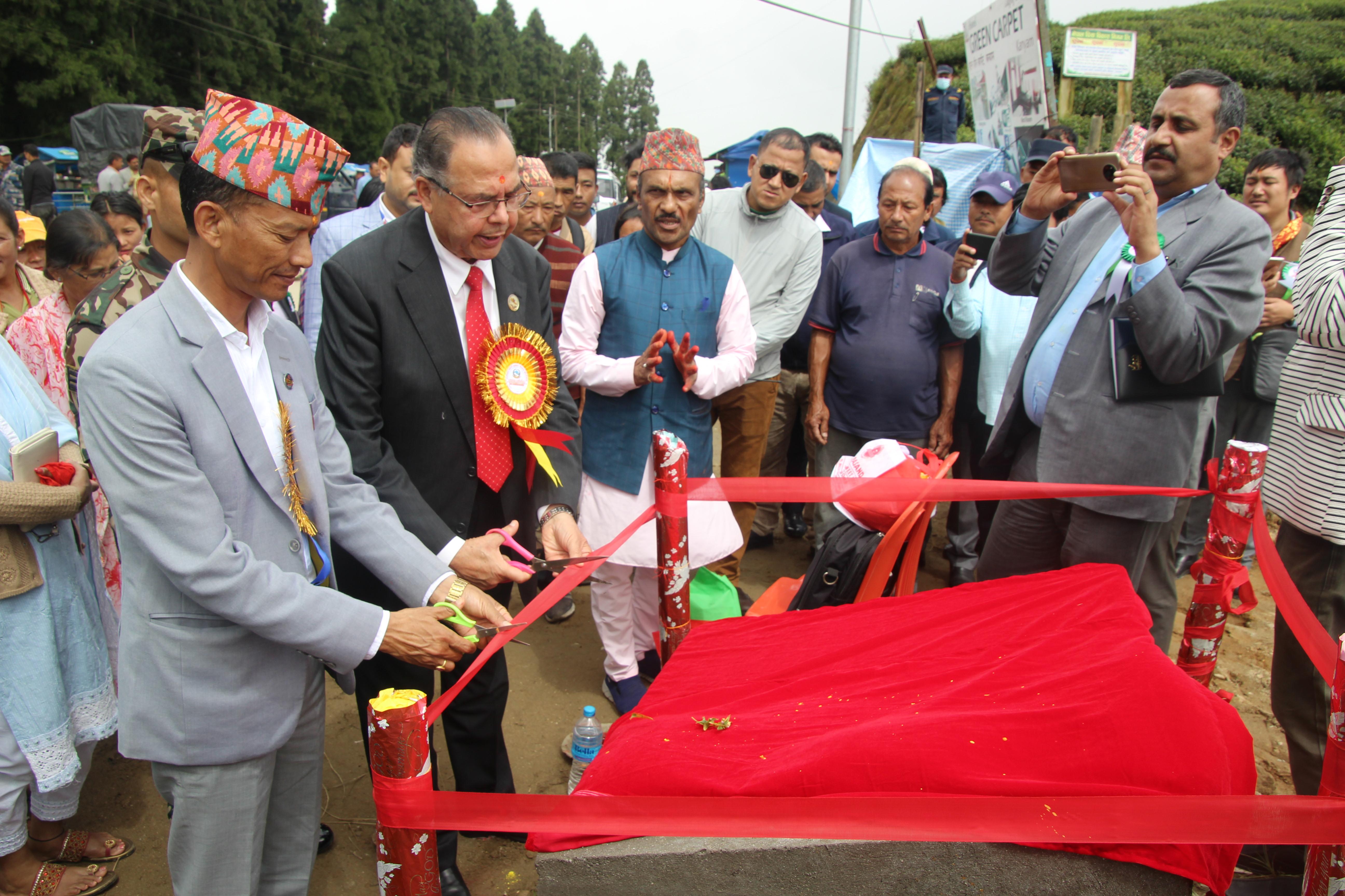 सूर्योदय नगरपालिका, इलामका विभिन्न स्थानमा एकीकृत शहरी पूर्वाधार विकास कार्यक्रमको शिलान्यास गर्नुहुँदै पूर्व प्रधानमन्त्री र माननीय शहरी विकास मन्त्री मेटमणि चौधरीज्यू