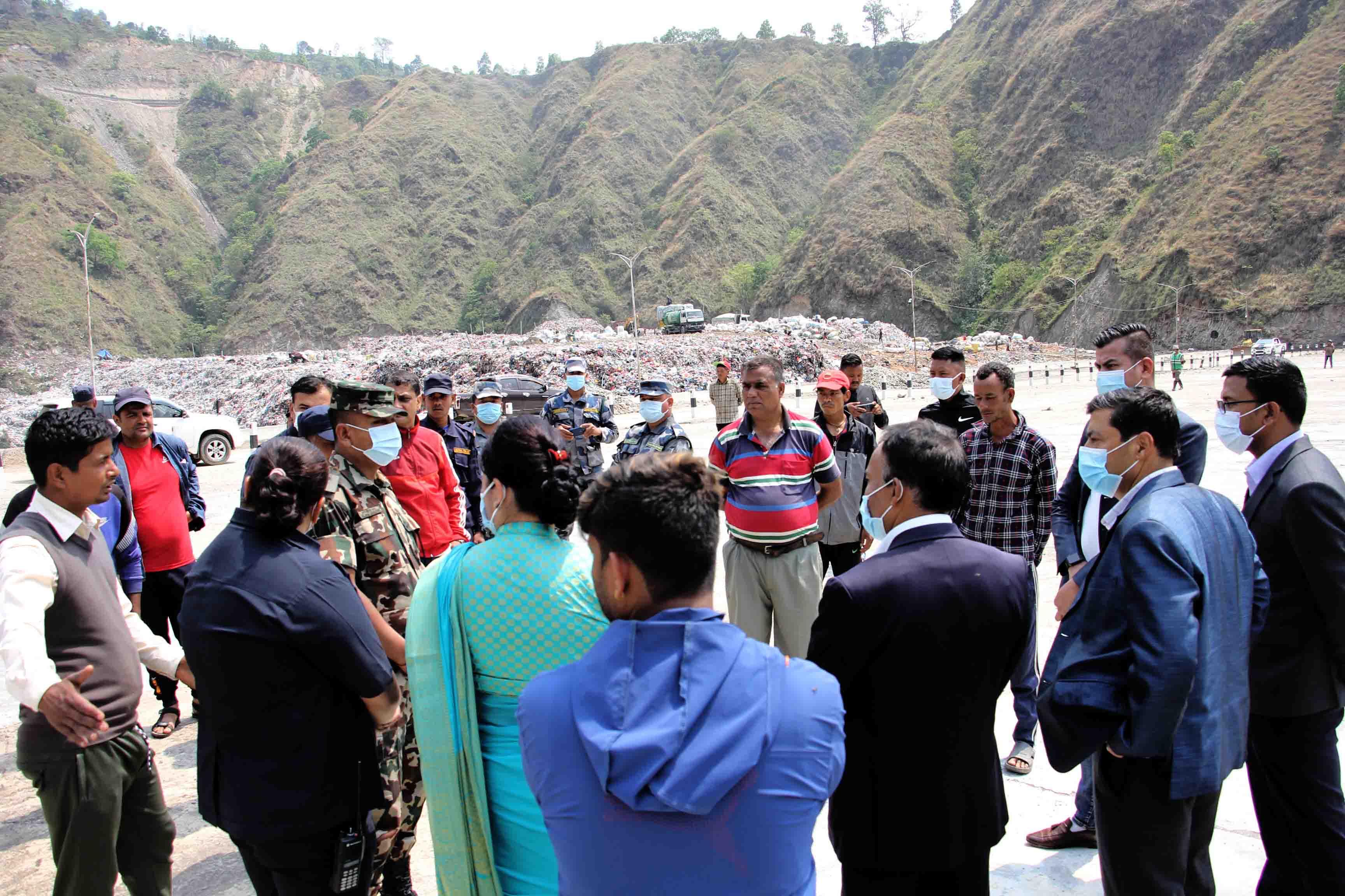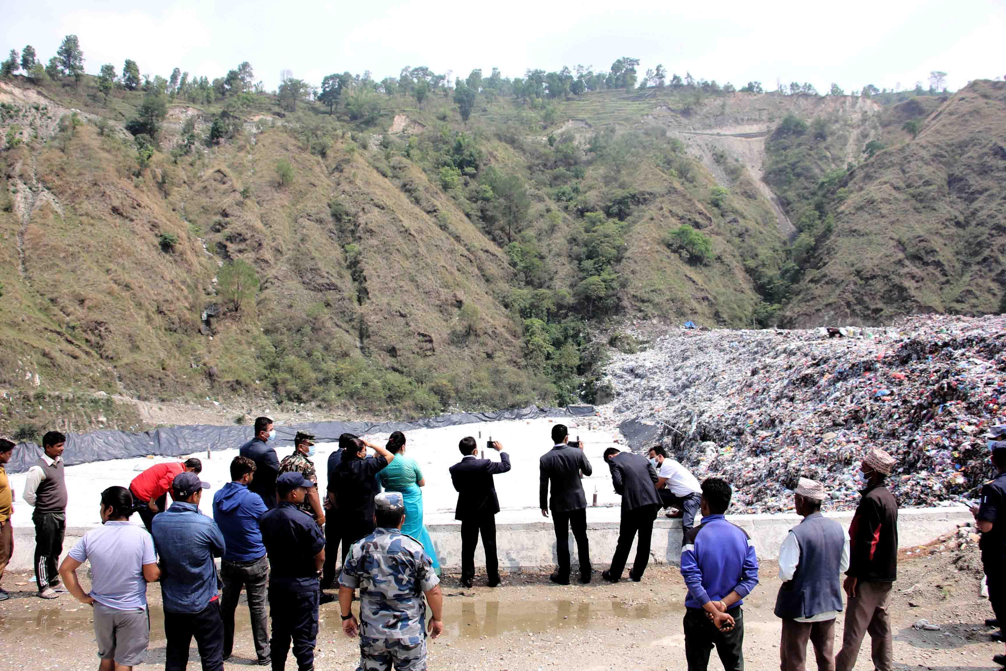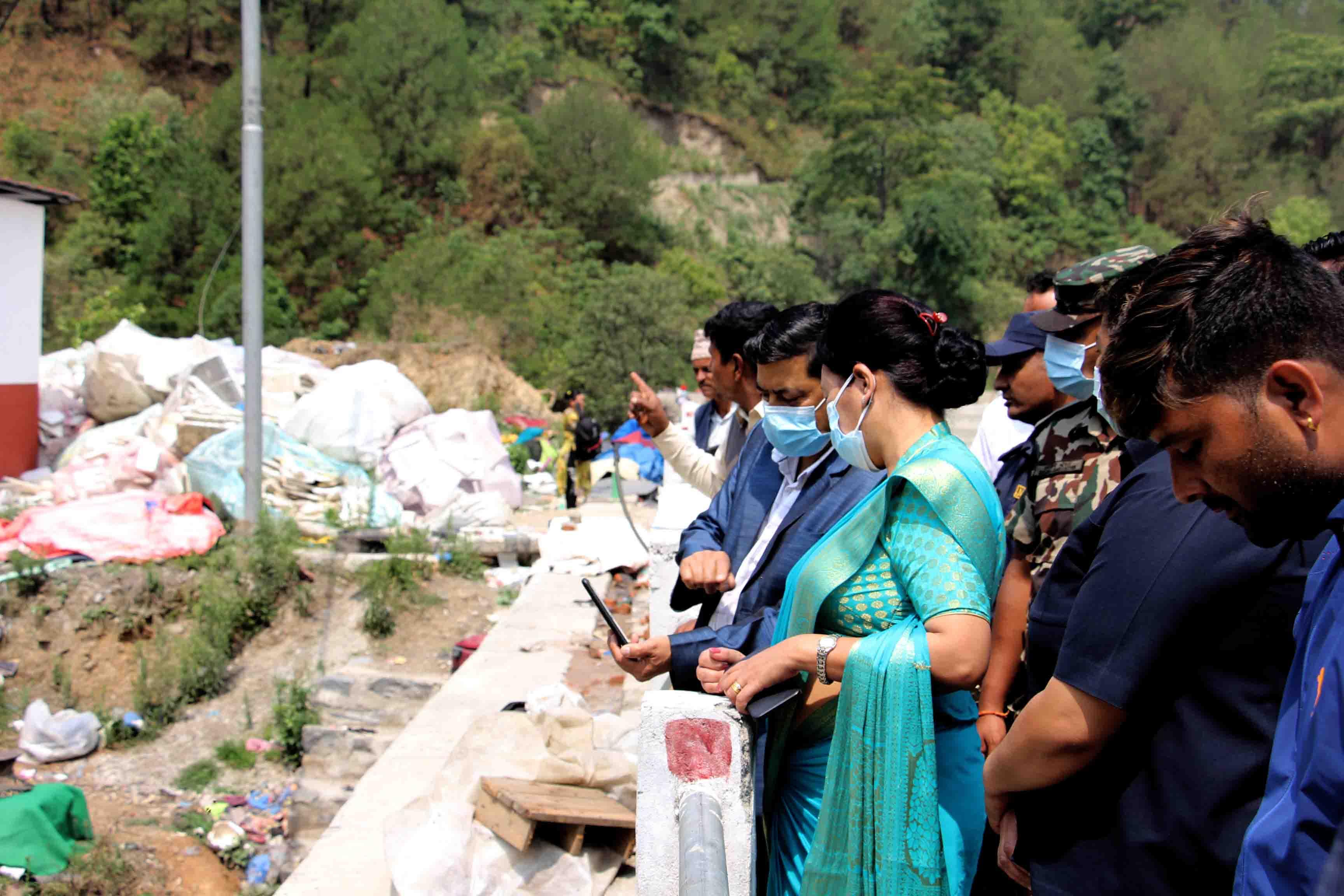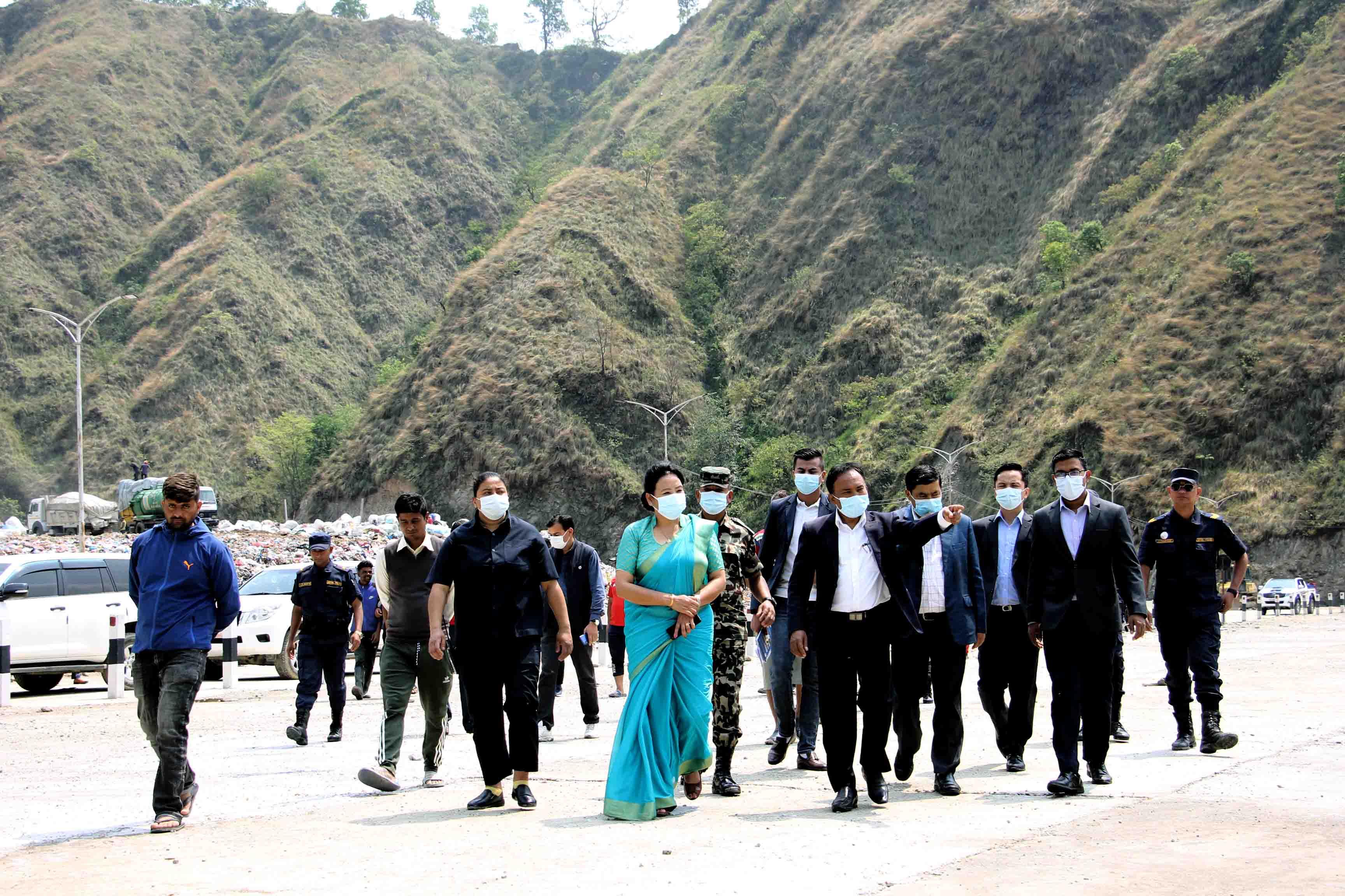 माननीय मन्त्री सीता गुरुङज्यू र श्रीमान् सचिवज्यूद्वारा बन्चरेडाँडामा निर्माणाधीन स्यानिटरी ल्याण्डफिल साइटको स्थलगत अनुगमन तथा निरीक्षण (२०८०-०२-०२)