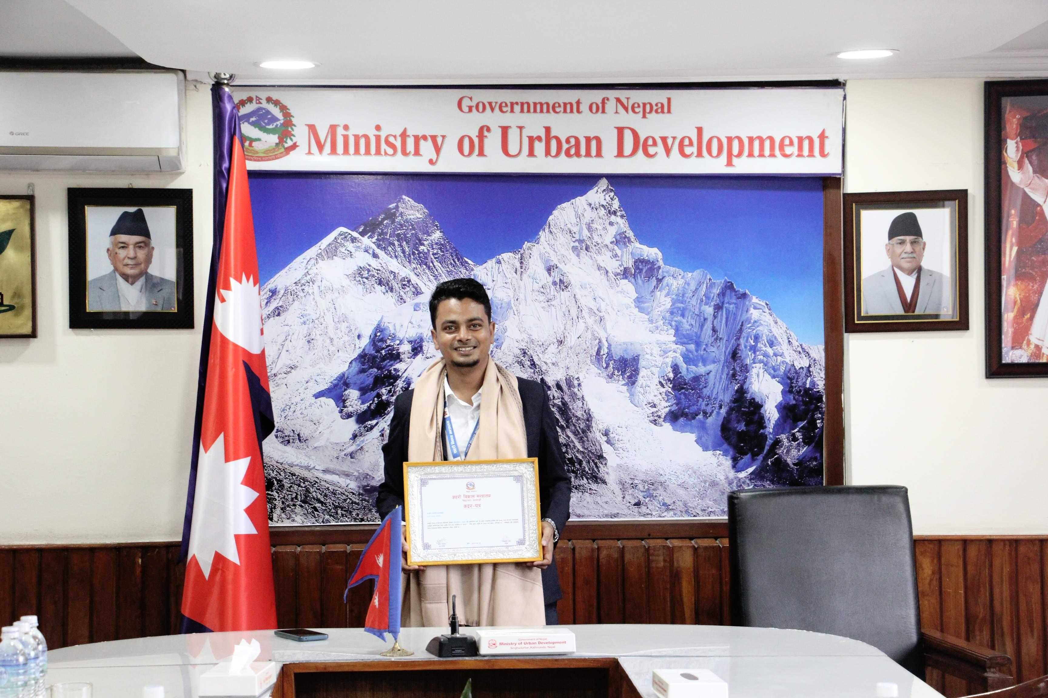 निजामती सेवा दिवस, आ.व. २०७९-८० को शहरी विकास मन्त्रालयको उत्कृष्ट कर्मचारी इन्जिनियर श्री अर्जुन महतो कुशवाह सम्मानित (२०८०-०५-२२)