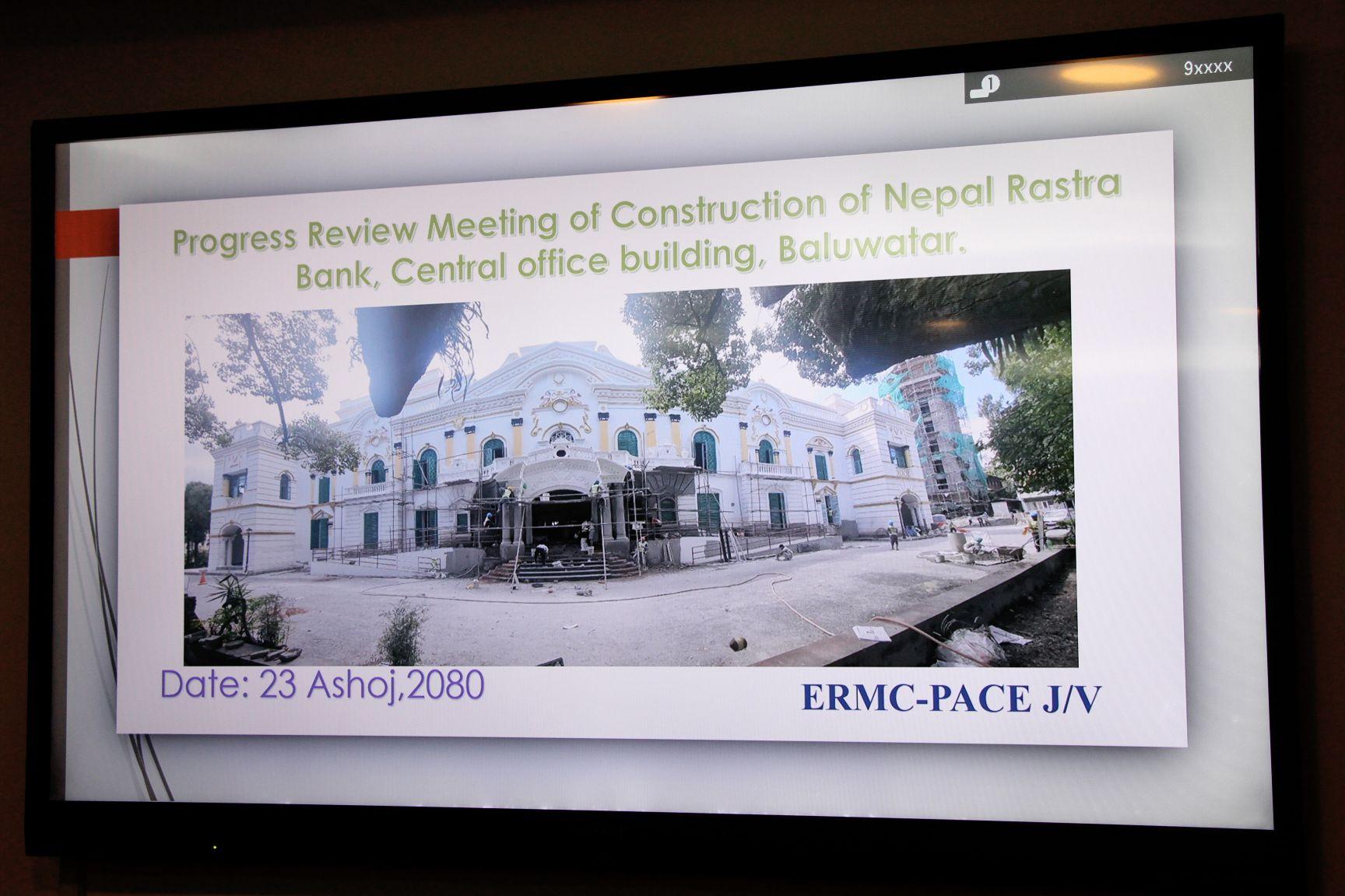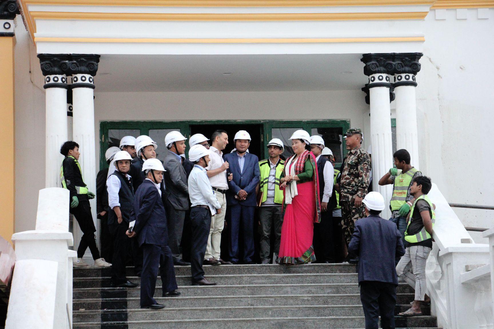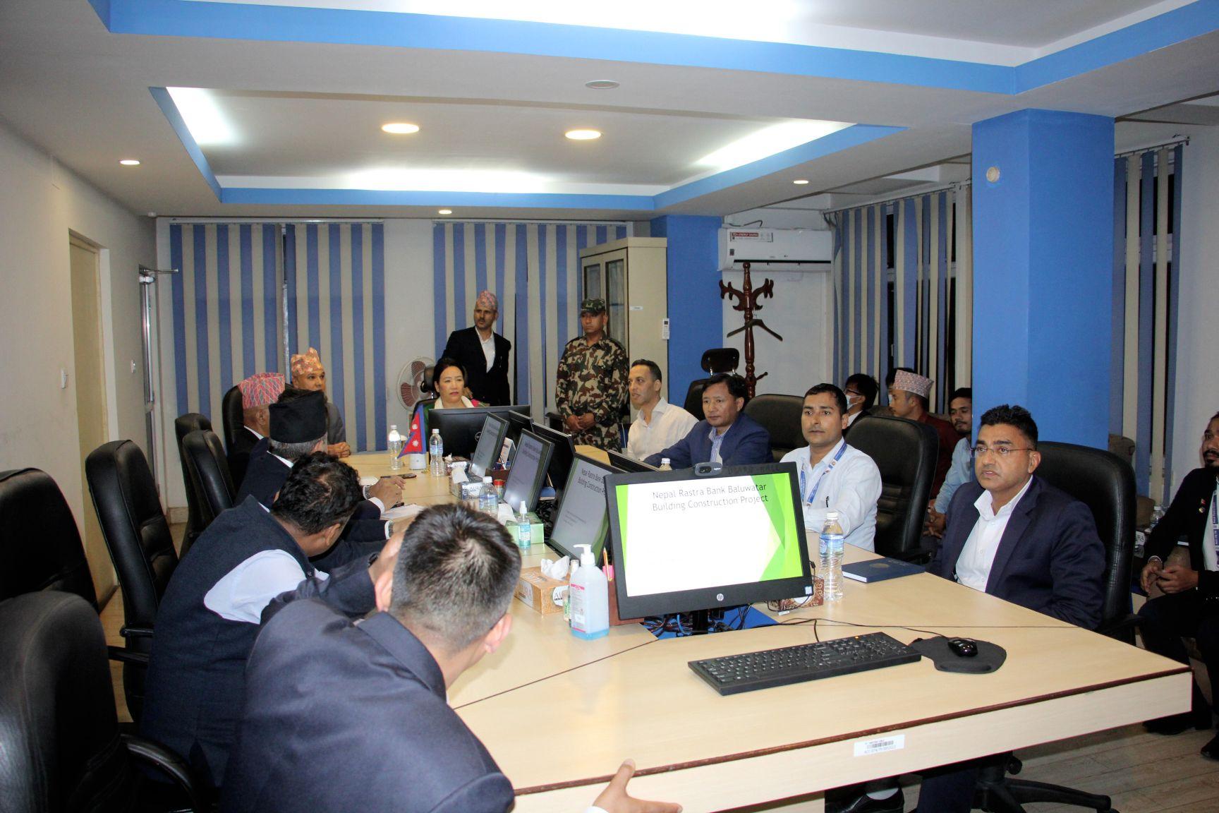 माननीय शहरी विकास मन्त्री सीता गुरुङज्यूबाट निर्माण प्रक्रियाको अन्तिम चरणमा रहेको बालुवाटारस्थित नेपाल राष्ट्र बैंकको केन्द्रीय कार्यालय रहने भवनको स्थलगत अनुगमन तथा निरीक्षण (२०८०-०६-२३)