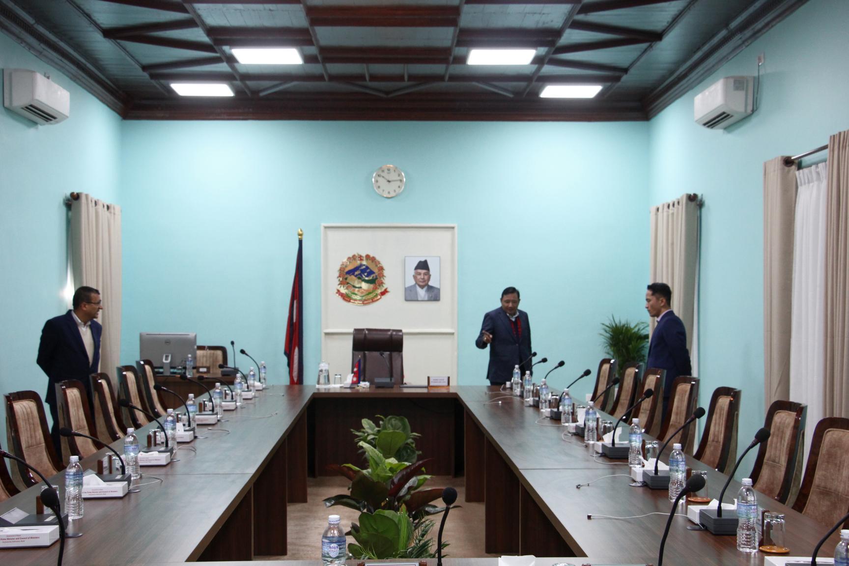 वि.सं. २०७२ सालको भूकम्पले क्षति पुगेपछि प्रधानमन्त्री तथा मन्त्रिपरिषद् कार्यालयको प्रबलीकरणको काम शहरी विकास मन्त्रालयले सम्पन्न गरे सँगै क्याबिनेट बैठक नयाँ हलमा आजबाट सुरुवात (२०८०-०९-०४)