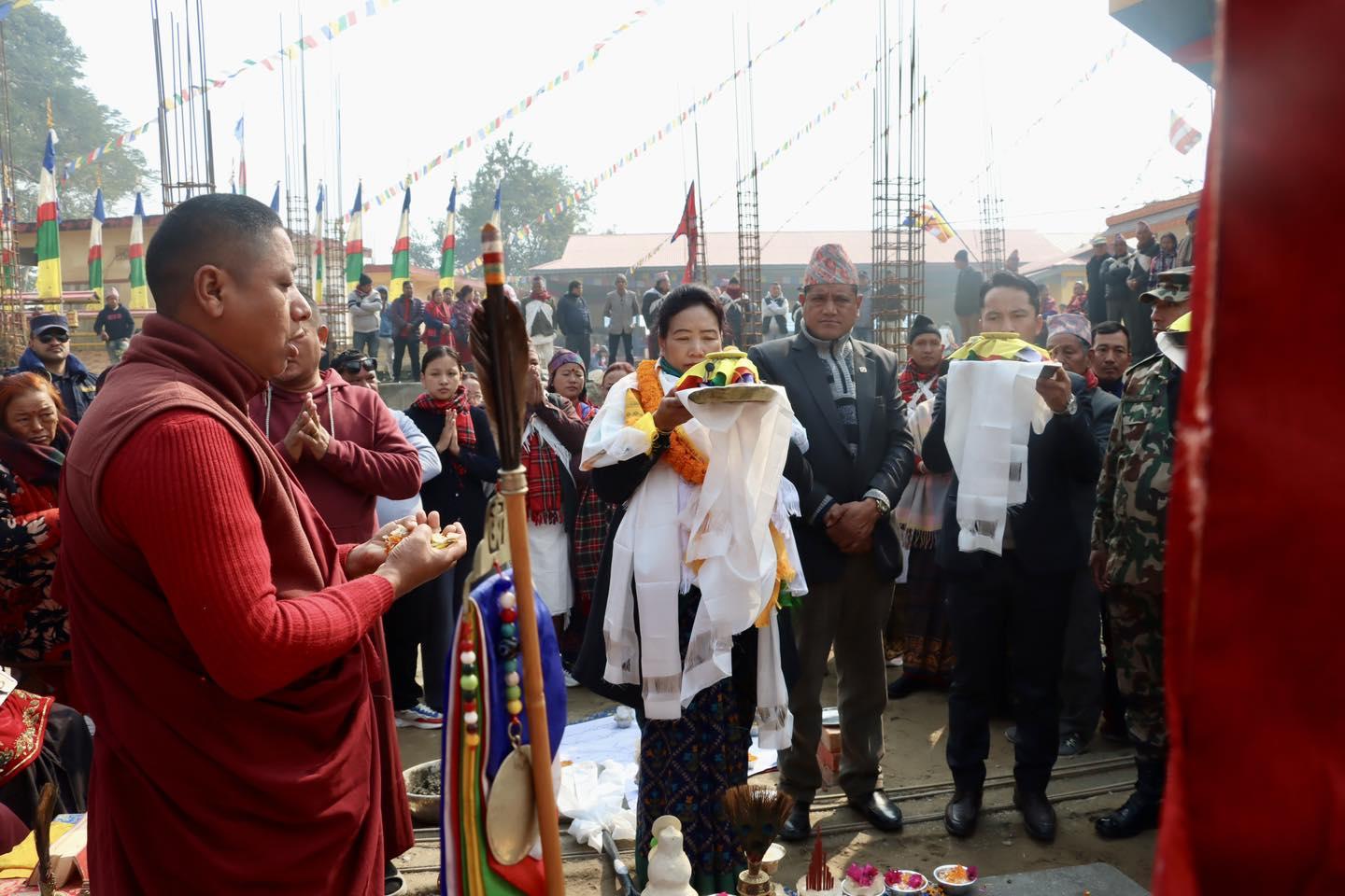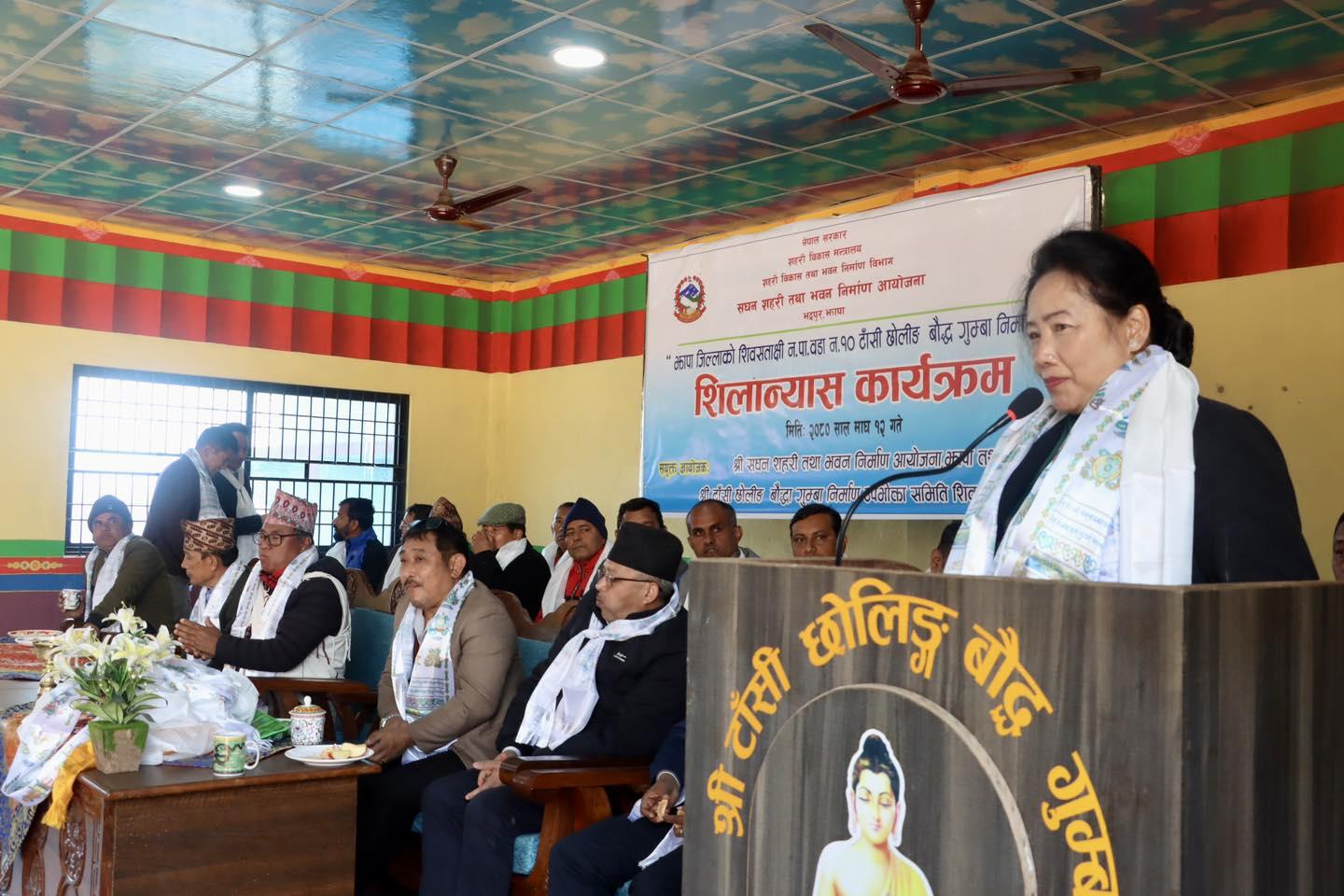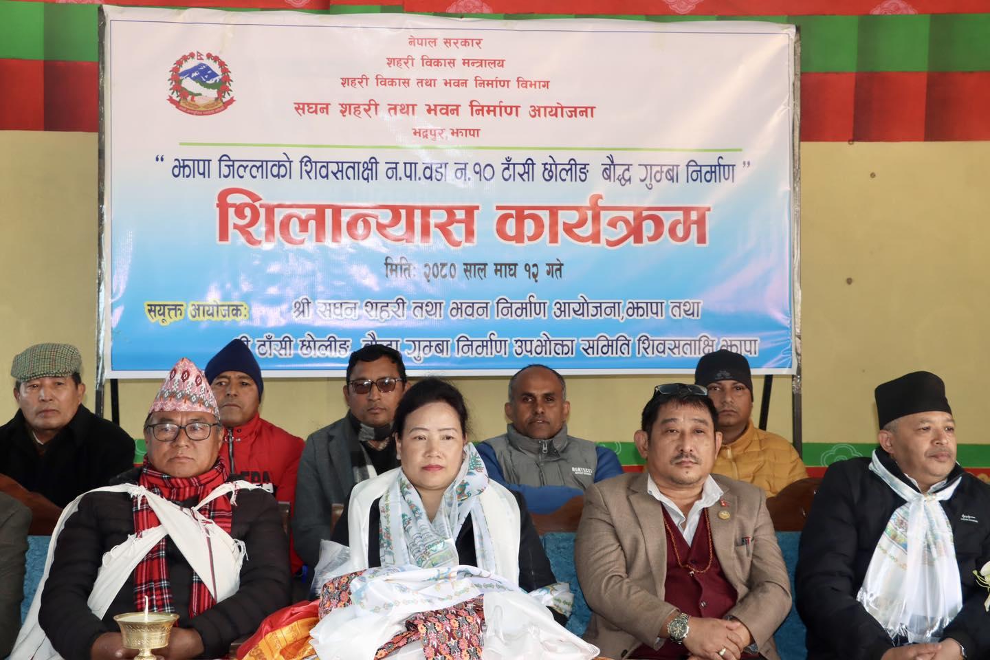 माननीय शहरी विकास मन्त्री सिता गुरुङज्यूबाट झापा जिल्लाको शिवसताक्षी न.पा., वडा नं. १०, माइमा टाँसी छोलीङ बौद्ध गुम्बा निर्माणको शिलान्यास कार्यक्रम (२०८०-१०-१२)