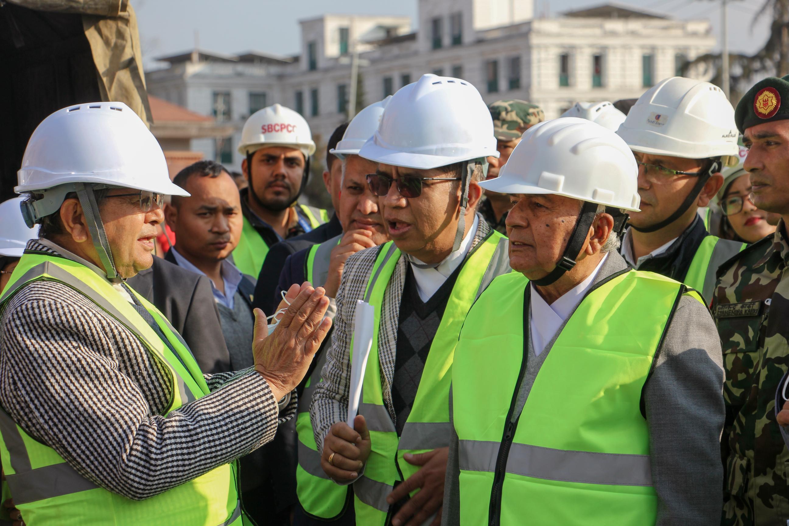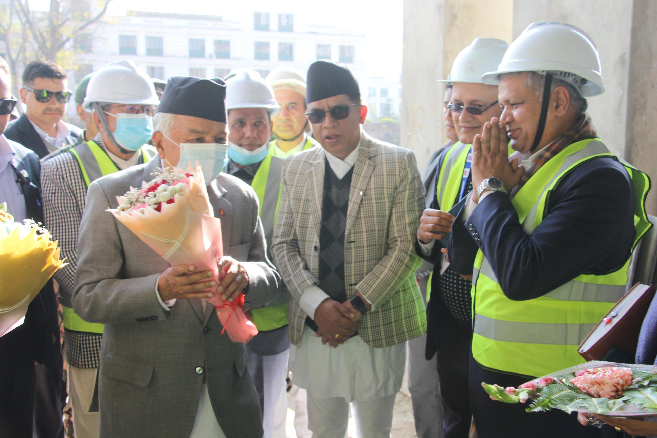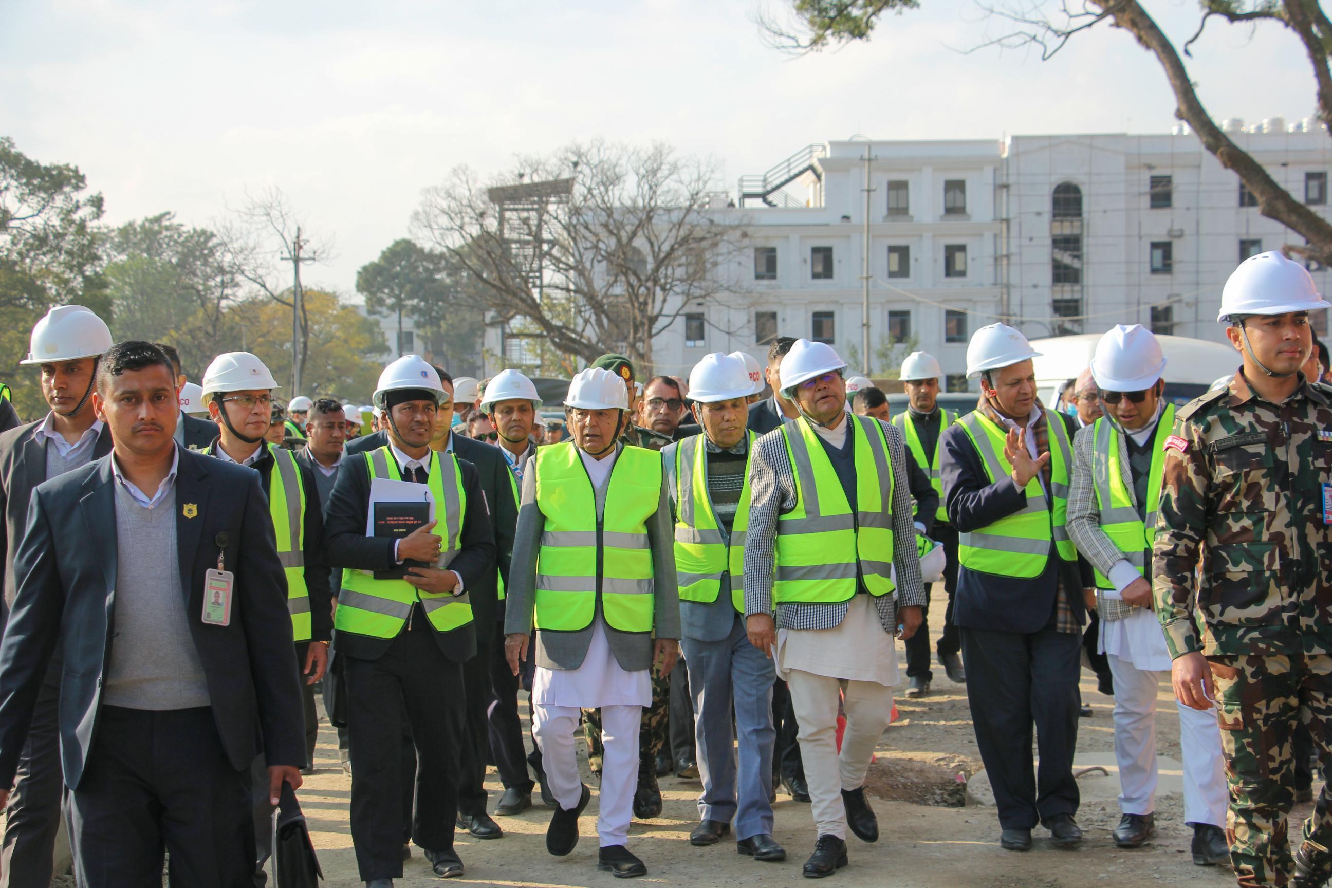 सम्माननीय राष्ट्रपति रामचन्द्र पौडेलज्यूबाट निर्माणाधीन सङ्घीय संसद् भवनको अवलोकनका झलकहरू (२०८१-०९-२९)